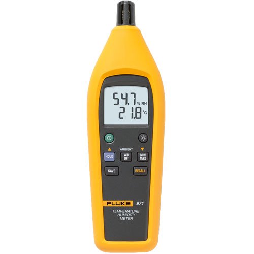 Temperature and humidity are two important factors in maintaining optimal comfort levels and good indoor air quality. Quickly and conveniently take accurate humidity and temperature readings with the Fluke 971. The Fluke 971 is invaluable for facility maintenance and utility technicians, HVAC-service contractors, and specialists who assess indoor air quality (IAQ). Lightweight and easy to hold, the Fluke 971 is the perfect tool for monitoring problem areas. With its rugged holster, the Fluke 971 is built to perform and made to last.