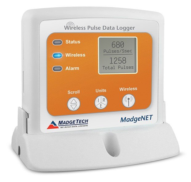 The RFPulse2000A features an LCD screen which provides instant access to the current reading, minimum, maximum and average statistics. Through the software the device can be programmed to convert the pulse output into a different unit of measure such as gallons per minute or miles per hour. This information can be viewed on the LCD screen of the data logger as well as in the software.