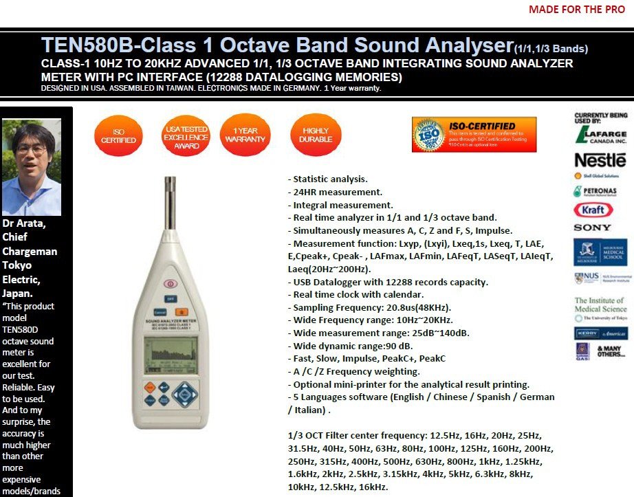 Featured item TEN580B-Class 1 Octave Band Sound Analyser(1/1,1/3 Bands) L90